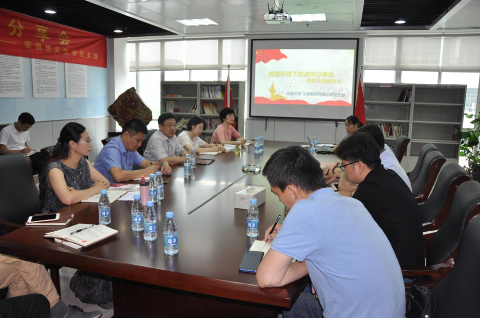 本次讀書會是安徽貝克生物黨支部開展的黨建引領(lǐng)下的讀書系列分享會最后一期,與前期不同的是,為響應(yīng)基層黨組織工作互動和資源共享,優(yōu)勢互補(bǔ)的號召、公司黨支部還特別邀請了和一社區(qū)黨建工作站楊陽、余章鳳兩位同志及周邊非公企業(yè)包括金東方、百勝科技、國發(fā)通信等六家單位前來參會觀摩,共同交流、探討如何豐富黨建活動的形式、提升黨建活動實(shí)際效果。