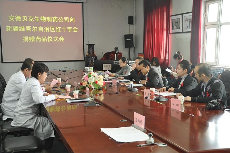 為了促進(jìn)新疆艾滋病防治事業(yè)的發(fā)展,提高抗病毒治療的依從性,有效降低疾病進(jìn)展的危險性和死亡率,2014年10月31日,在新疆維吾爾自治區(qū)紅十會的關(guān)懷下,安徽貝克生物制藥有限公司向自治區(qū)第六人民醫(yī)院捐贈價值1247萬元的艾滋病藥品。