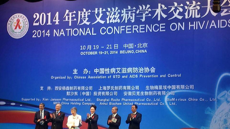 2014年10月20日,本年度規(guī)格最高、影響力最大的艾滋病學(xué)術(shù)交流大會(huì)在北京建國(guó)飯店舉行開(kāi)幕儀式。艾滋病親善大使彭麗媛女士,諾貝爾獎(jiǎng)獲得者法國(guó)佛朗索瓦絲·巴爾-西諾西教授及洛克菲勒大學(xué)艾倫·戴蒙德艾滋病研究中心主任何大一教授等國(guó)內(nèi)外艾滋病等相關(guān)領(lǐng)域的知名人士、著名專家學(xué)者應(yīng)邀出席,國(guó)內(nèi)疾控系統(tǒng)負(fù)責(zé)人、愛(ài)心企業(yè)和新聞媒體人士共一千余人參加開(kāi)幕式。