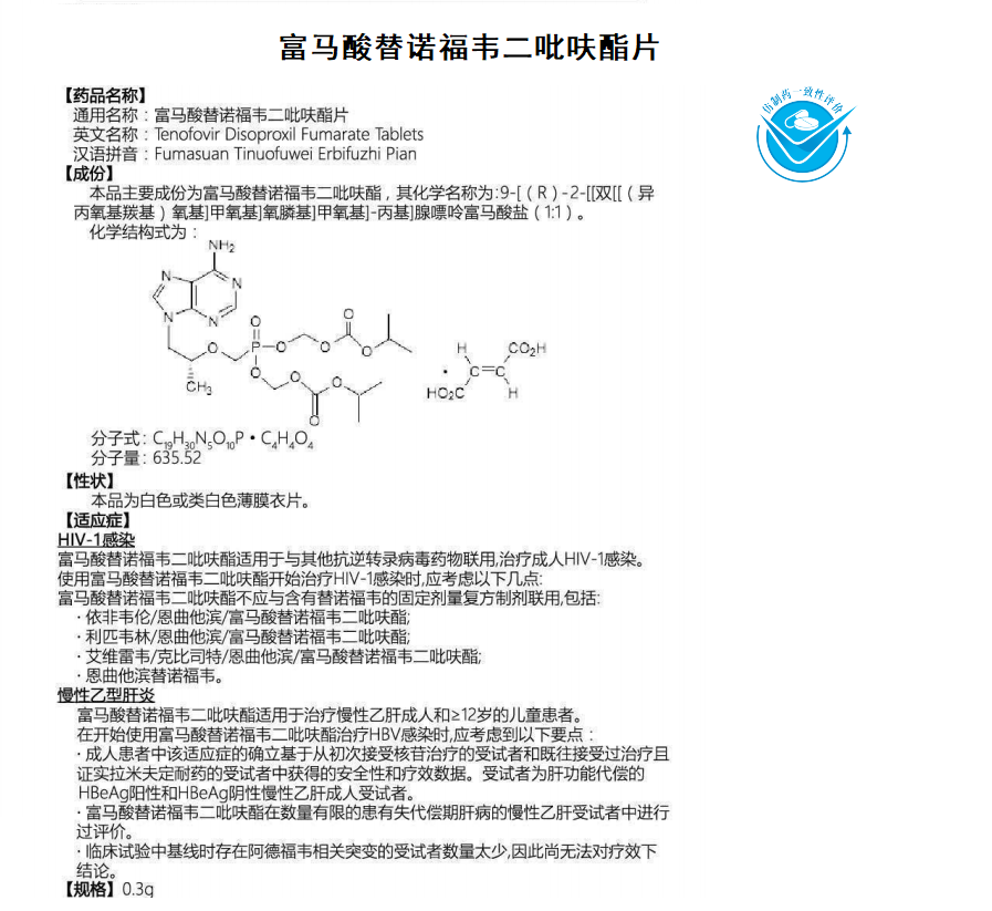 富馬酸替諾福韋二吡呋酯片(300mg,30片)