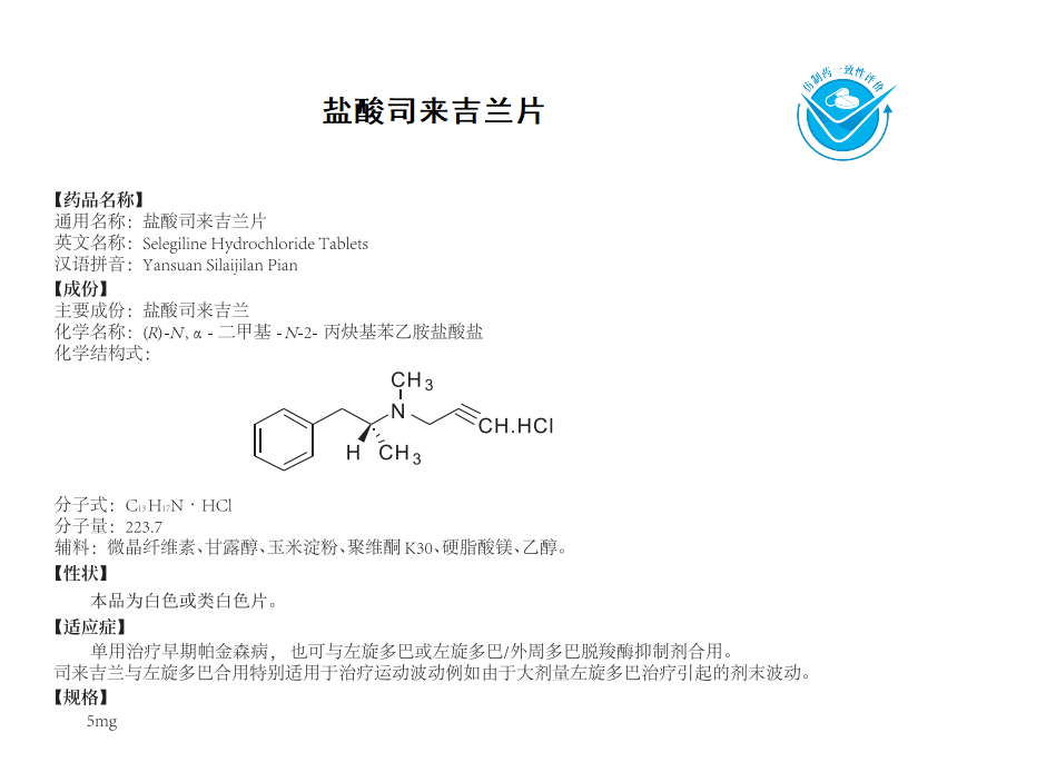 鹽酸司來吉蘭片