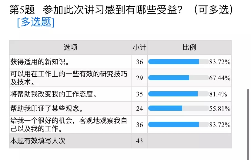 在培訓反饋中,新員工對培訓的課程設置、教學形式、課時安排、培訓師授課質量及培訓組織管理給予了高度評價。通過此次培訓,新員工紛紛表示受益匪淺,在本次培訓中學到了知識、掌握了技巧、拓寬了視野、提升了能力。