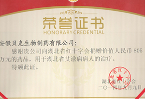 - 安徽貝克向湖北省紅十字會(huì)捐贈(zèng)抗艾滋病藥品