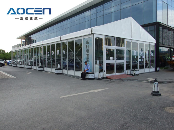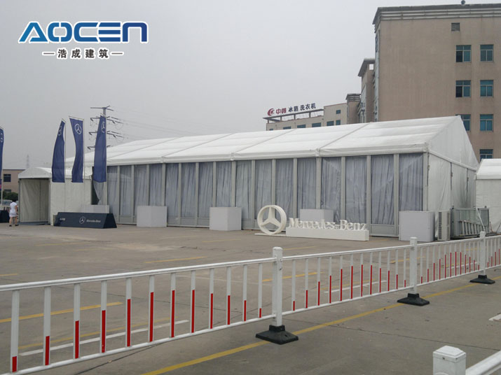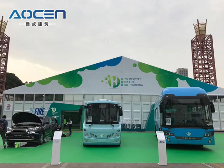 展覽會議搭建速度快,后期拆卸方便可移動,有防水,防紫外線的性能,可抵抗10級風量。浩成篷房專業生產制造各種展覽會議產品,咨詢熱線:13115278888